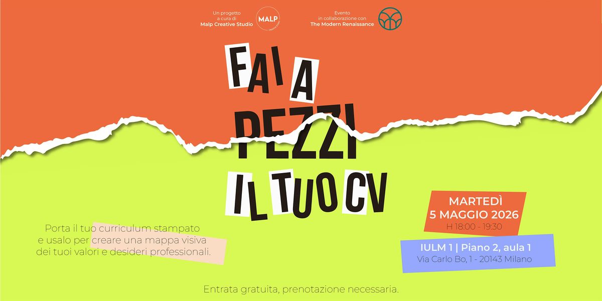 Questo laboratorio di Fai a Pezzi il tuo CV è realizzato all'interno del programma di eventi di The Modern Renaissance.