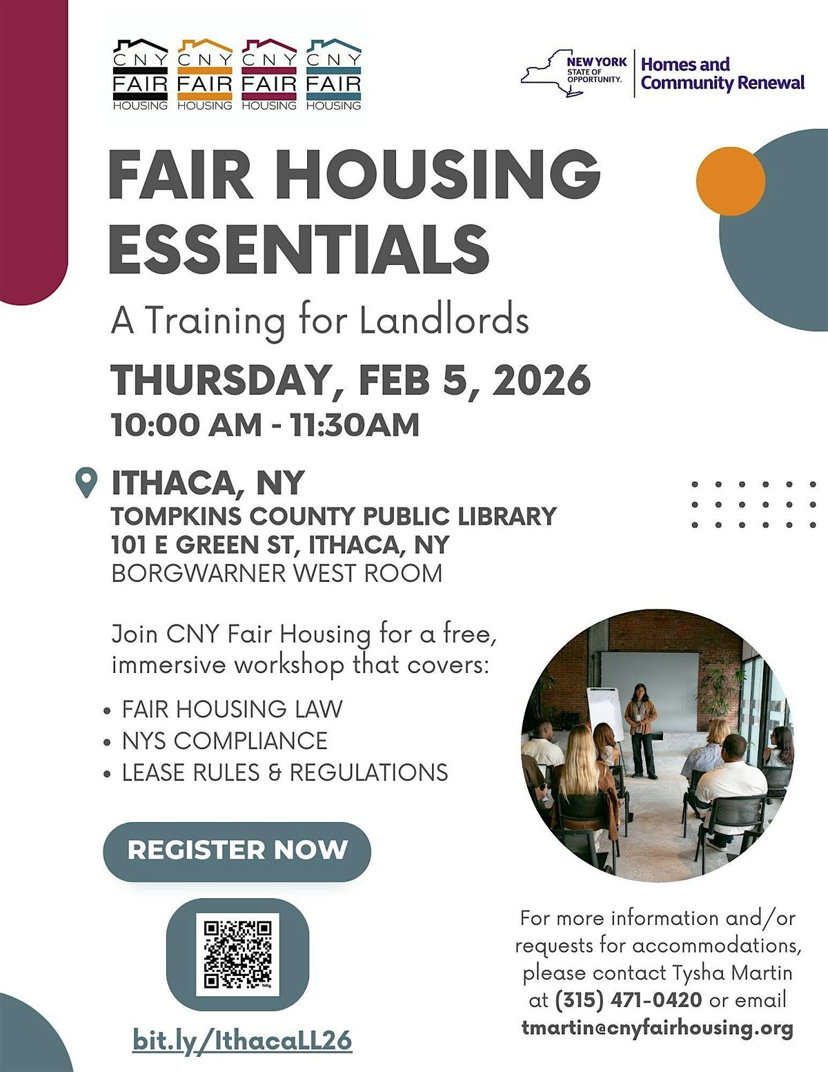 The training will be held on Thursday, February 5th, 2026 at Tompkins County Public Library, 101 E Green St, Ithaca, BorgWarner West room from 10:00-11:30AM.