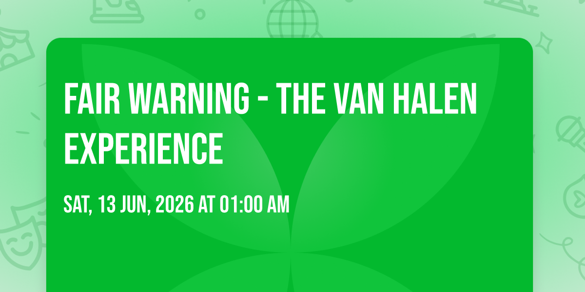 📍 Location: 32.7164, -117.16🌟 Be part of history at Fair Warning - The Van Halen Experience, an extraordinary gathering that will captivate your imagination! 🏛️ The prestigious House of Blues - San Diego in San Diego, CA sets the stage for an unforgettable experience on June 13th, 2026 at 01:00 AM. ✨ They are bringing together the finest elements of entertainment and innovation to create moments that will take your breath away. From the moment you arrive, you'll be immersed in an atmosphere of wonder and excitement. 🎯 This carefully planned event ensures every guest experiences something truly special. 🎊 Early booking is recommended for this must-attend event of the season!