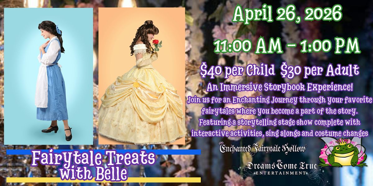 Come join Belle for fairytale fun and treats! Enjoy light themed refreshments, an immersive stage show storybook experience incorporating storytelling, costume changes, interactive activities and sing alongs to all your favorites and Meet and Greet and Photo Opportunities for every royal guest, to create plenty of unforgettable magical memories! We can't wait to share this classic fairytale with you!