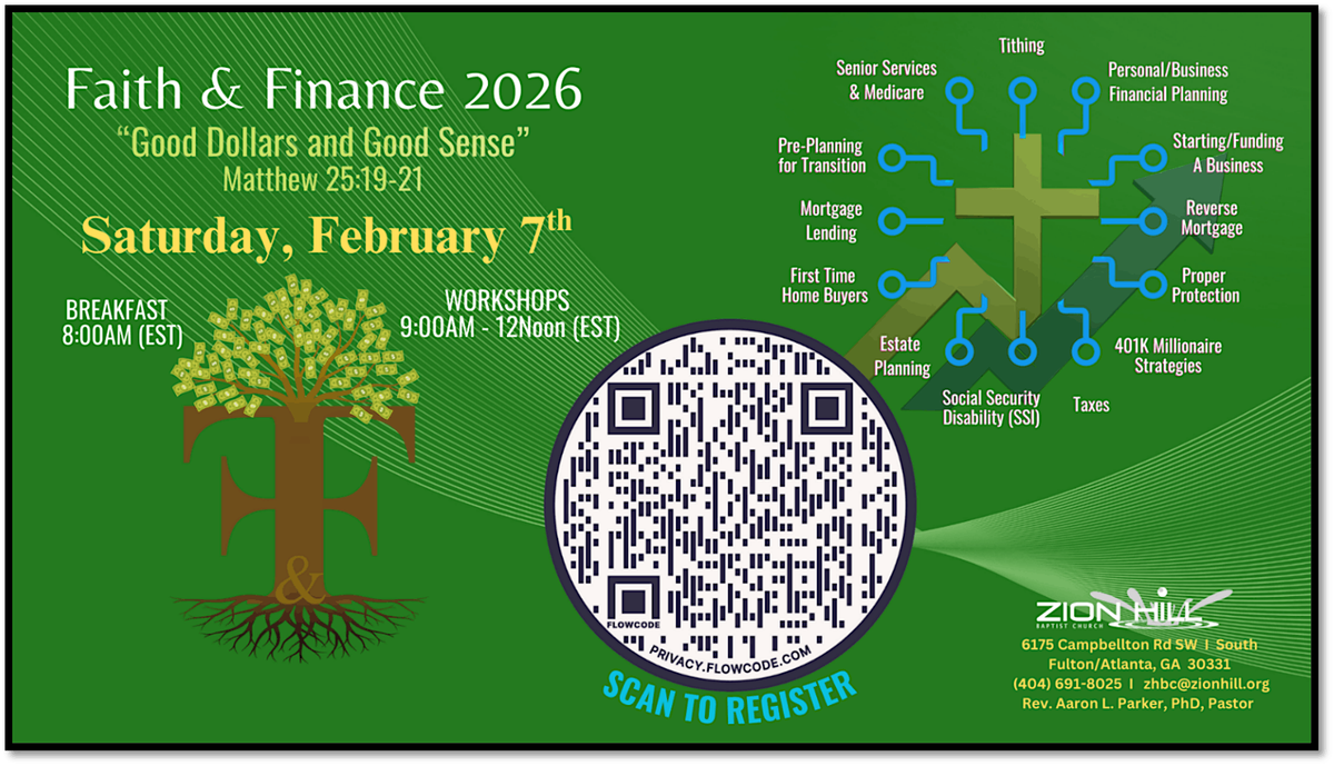 Come and join the Zion Hill Baptist Church family for Faith & Finance 2026! Please register to reserve your seat.About this Event