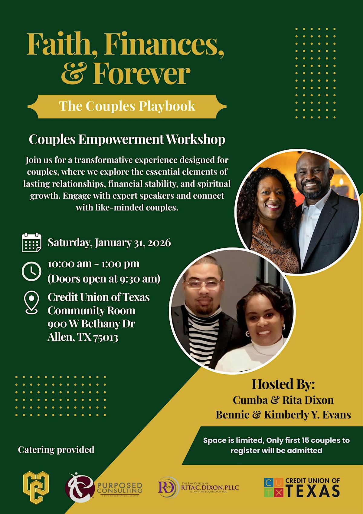 Space is limited to the first 15 couples to register. Lunch will be provided.