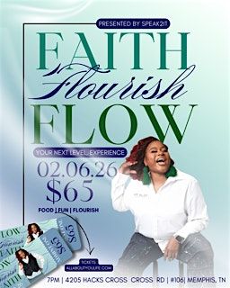 Join us for an inspiring in-person gathering where you'll dive deep into your faith, learn to flourish in everyday life, and find your natural flow. It's all about connecting, growing, and thriving together. Don’t miss out on this uplifting experience designed to energize your spirit and boost your confidence. Come as you are, and leave feeling refreshed and ready to soar!