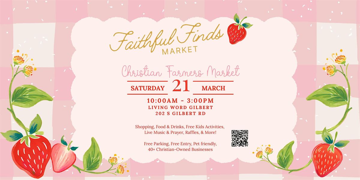 Faithful Finds Market is a family-friendly Christian farmers market in Gilbert, Arizona, featuring Christian-owned small businesses and a welcoming community atmosphere.