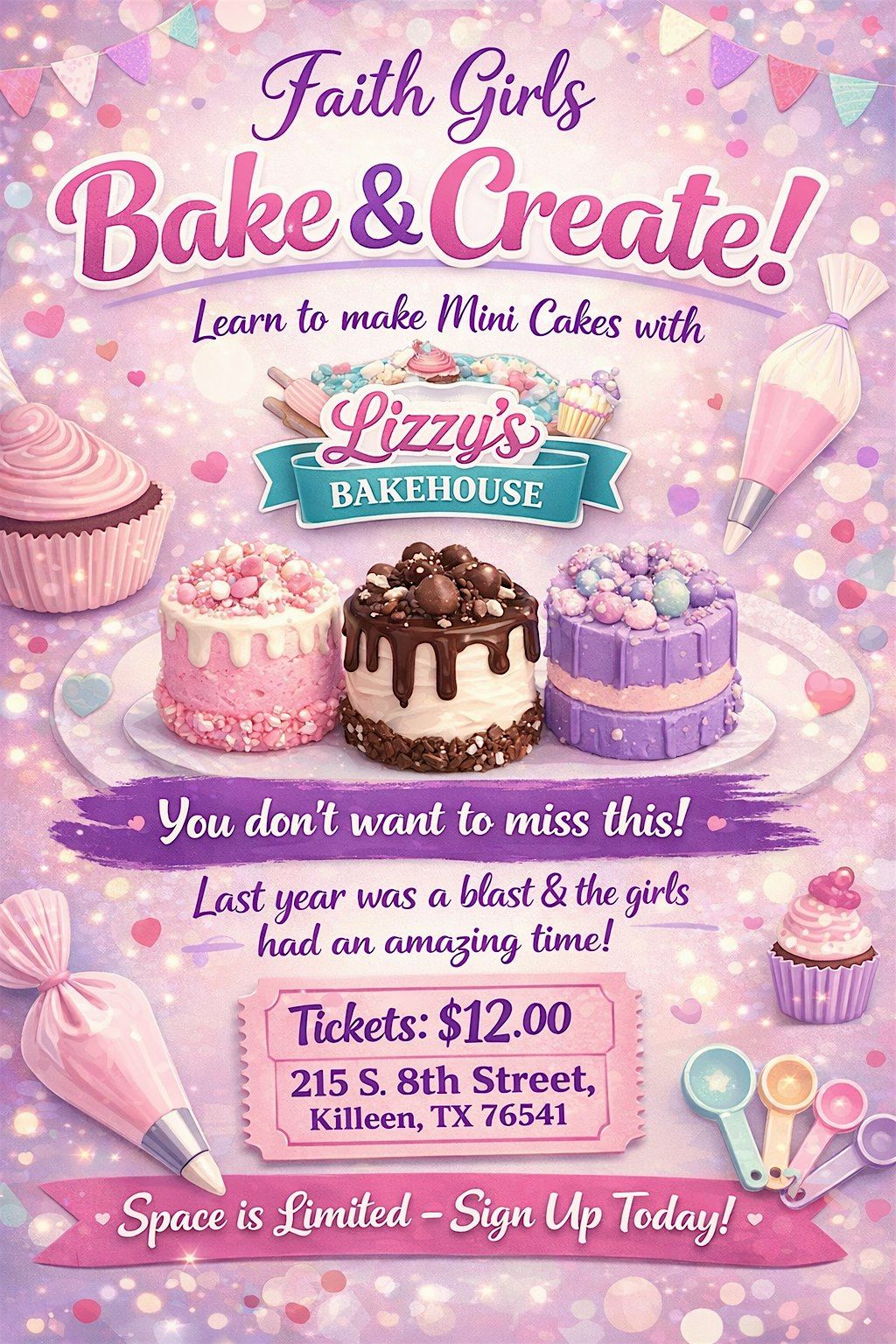 “Faith Girls Bake & Create is back! A fun, hands-on experience the girls will love. “Baking with purpose—teaching young girls confidence.