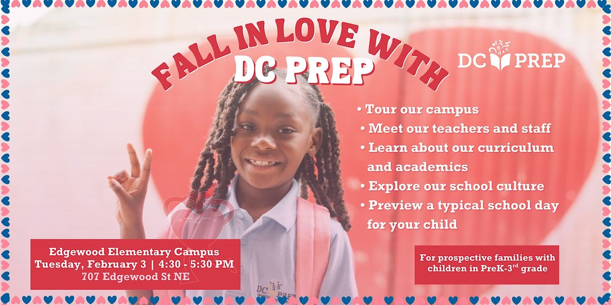 Fall in love with DC Prep and see why families rank us #1 on My School DC! Tour our campus, meet our amazing teachers and staff, explore our engaging curriculum and joyful school culture, and experience what a typical school day looks like for your child. This is your chance to see why DC Prep is the perfect first choice for your family.