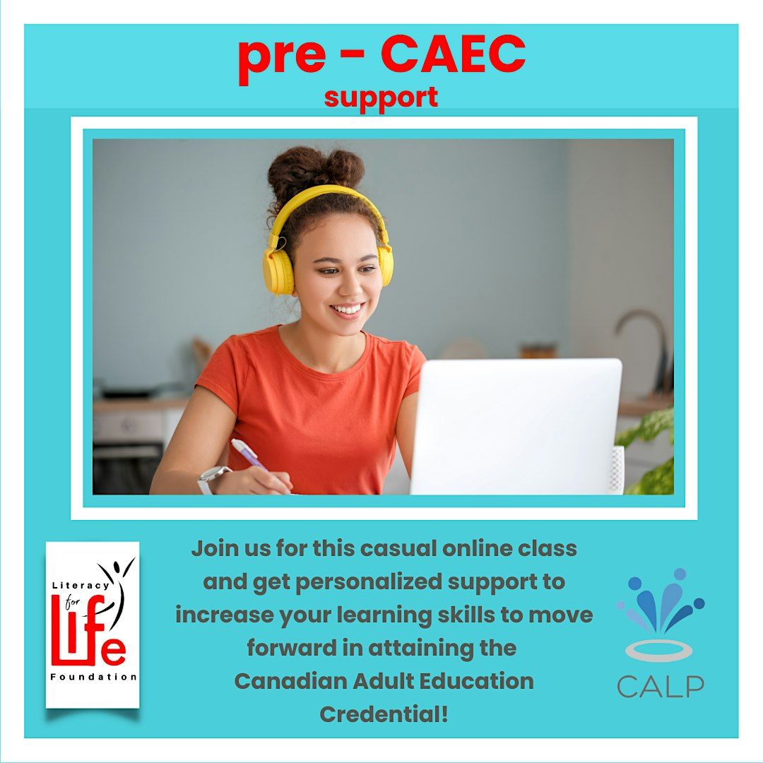 These small online ZOOM group sessions are designed for adults who would like personalized support to increase their learning skills. The course offers 50 hours of instruction where participants will increase their reading, comprehension, math and digital skills and study tips that best match their learning preferences and assist them in preparing to take a CAEC prep class.