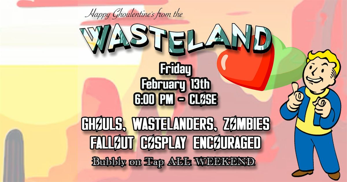 Happy Ghoulentine's Day! Join us inside for Fallout 2 Season Marathon, Dress up as your favorite Wasteland's and enjoy $5 bubbly all night!