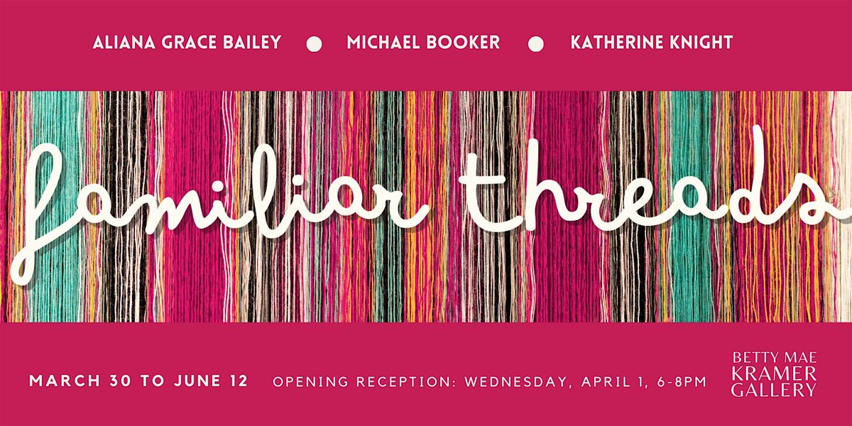Presented at the Betty Mae Kramer Gallery from March 30, 2026 - June 12, 2026, Familiar Threads is an exhibition curated by Stéphane Calvin Rosenberg. This opening reception is free and open to the public. For more information on the exhibition and the artists, click here.