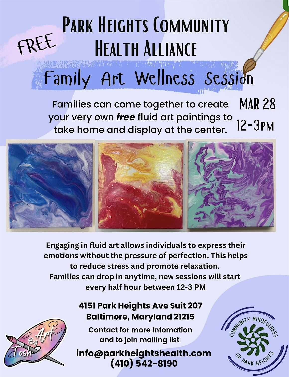 Welcome to our Family Art Wellness Session Part IV! Join us at 4151 Park Heights Ave for a fun and relaxing time with your loved ones. Let's unleash our creativity and bond through art together.