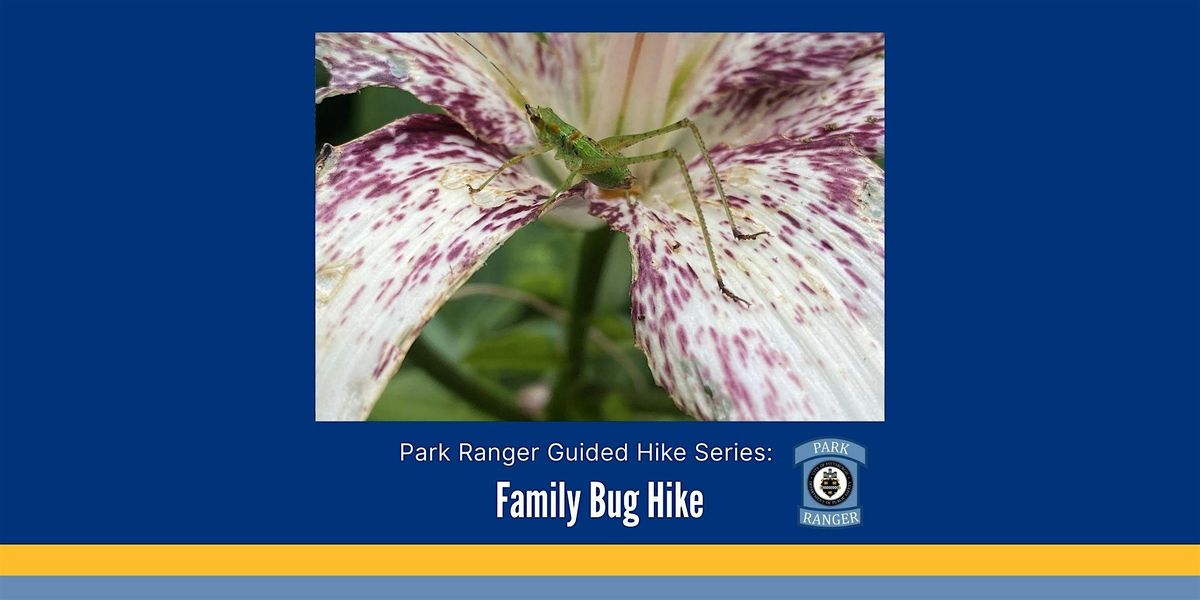 Interested in bugs and learning about nature? Join your Park Rangers on a small hike learning about bugs! Wear proper shoes and a water bottle. Make sure to wear bug spray (ticks)