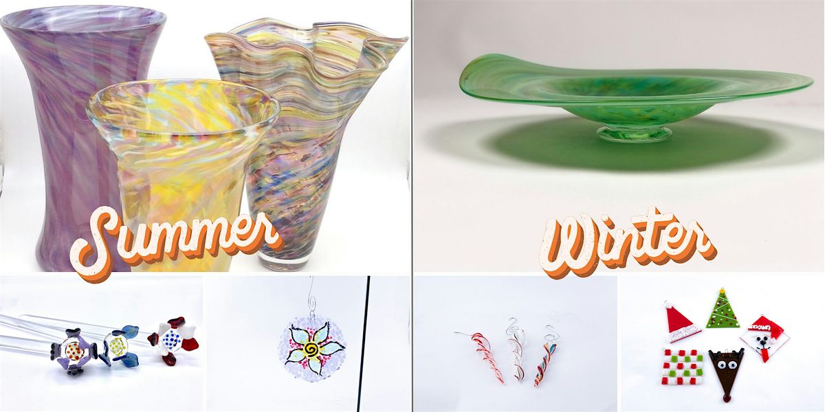In this 3.5-hour glass camp, our family campers will work in each of our three glass studios. With guidance from our talented camp instructors, each family will work together to create their item our glass blowing studio. Campers will create individual items in our kiln forming studio and our flame working studio. Items created will be based on the season. All work will be ready for pick up in the SiNaCa Studios gallery five business days after made.