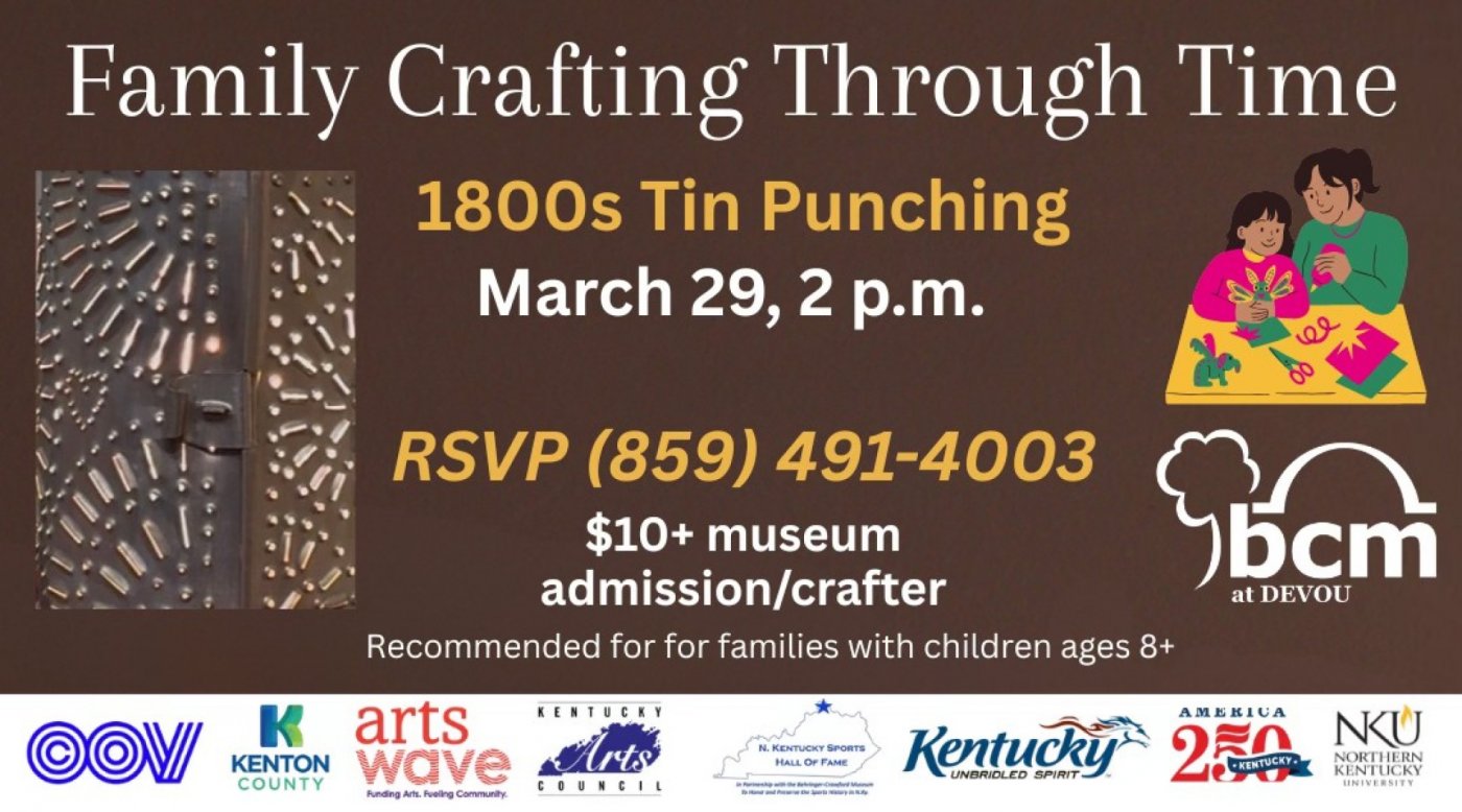Bring the family to Behringer-Crawford Museum for a hands-on craft inspired by history. During this special program, families will learn about tin punching, a decorative folk art popular in the 1800s, and create their own punched-tin design to take home.