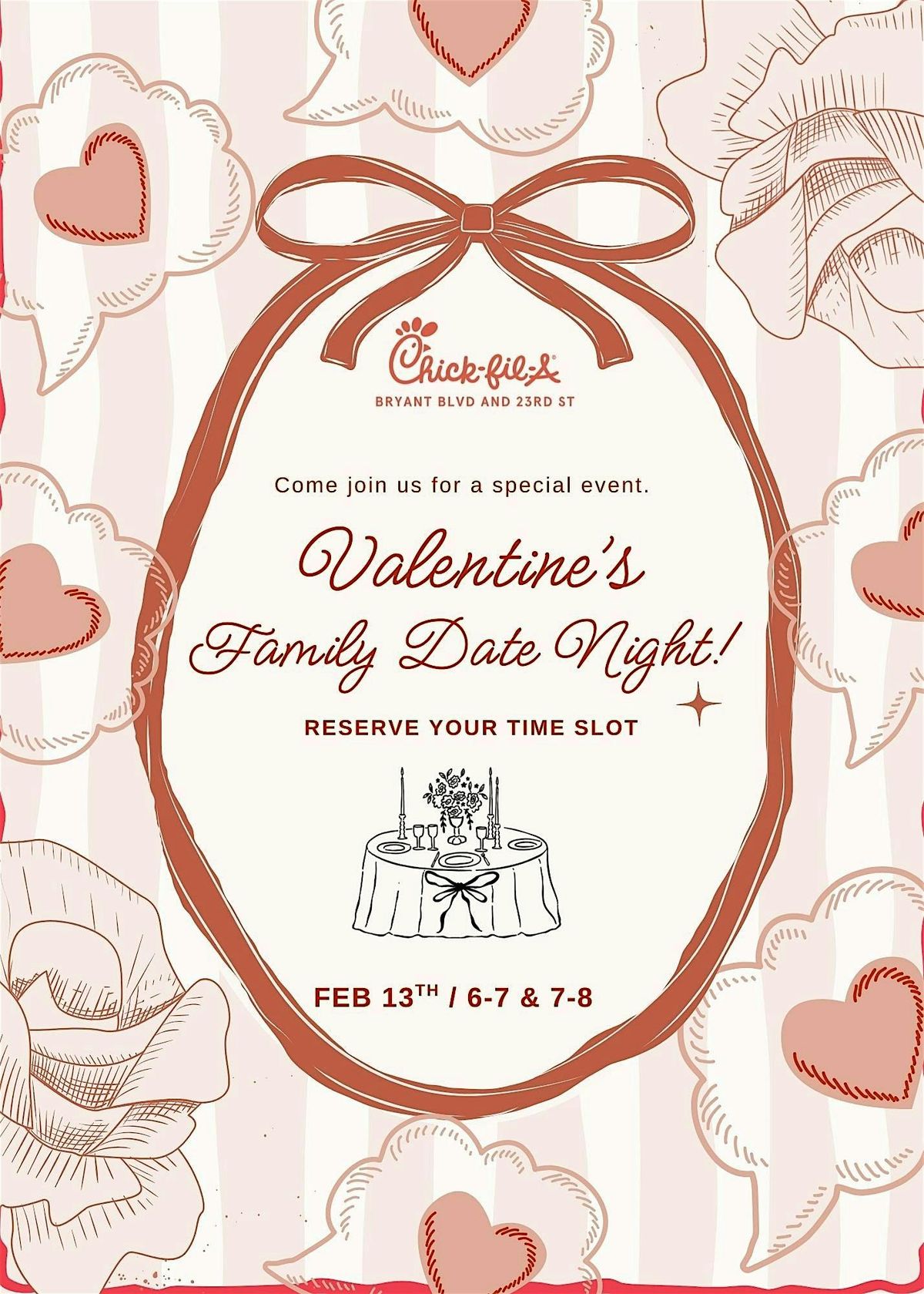 Valentines Day for the whole family! $10 a person will get your family a reserved table, a server, select menu and a fun craft! We will also have live music for you to enjoy, flowers, and a photo booth. Choose your time slot, either 6-7 or 7-8 PM. Payment will be taken on the night of the event. When reserving your spot, please select one ticket per person in your family. For example, if there are 5 people in your family, please reserve 5 spots.