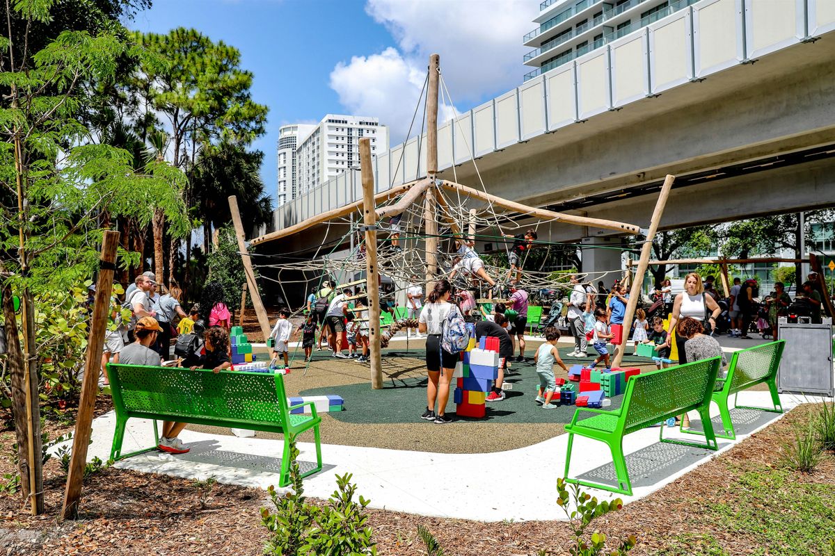 • 🚆 Take the Metrorail to the Brickell Metrorail Station, exit south, and walk toward The Hammock Playground on SW 15th Road and SW 1st Avenue.