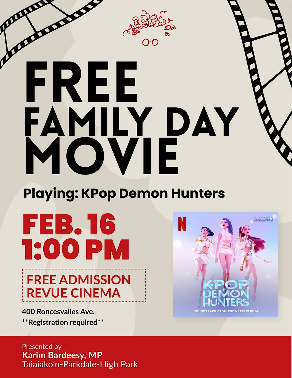 Join us at the Revue Cinema for a free Family Day screening of KPop Demon Hunters! Bring your family and dive into this exciting movie together. It's a perfect way to chill, laugh, and enjoy some quality time. Don't miss out on a day full of thrills and cool tunes! See you there!