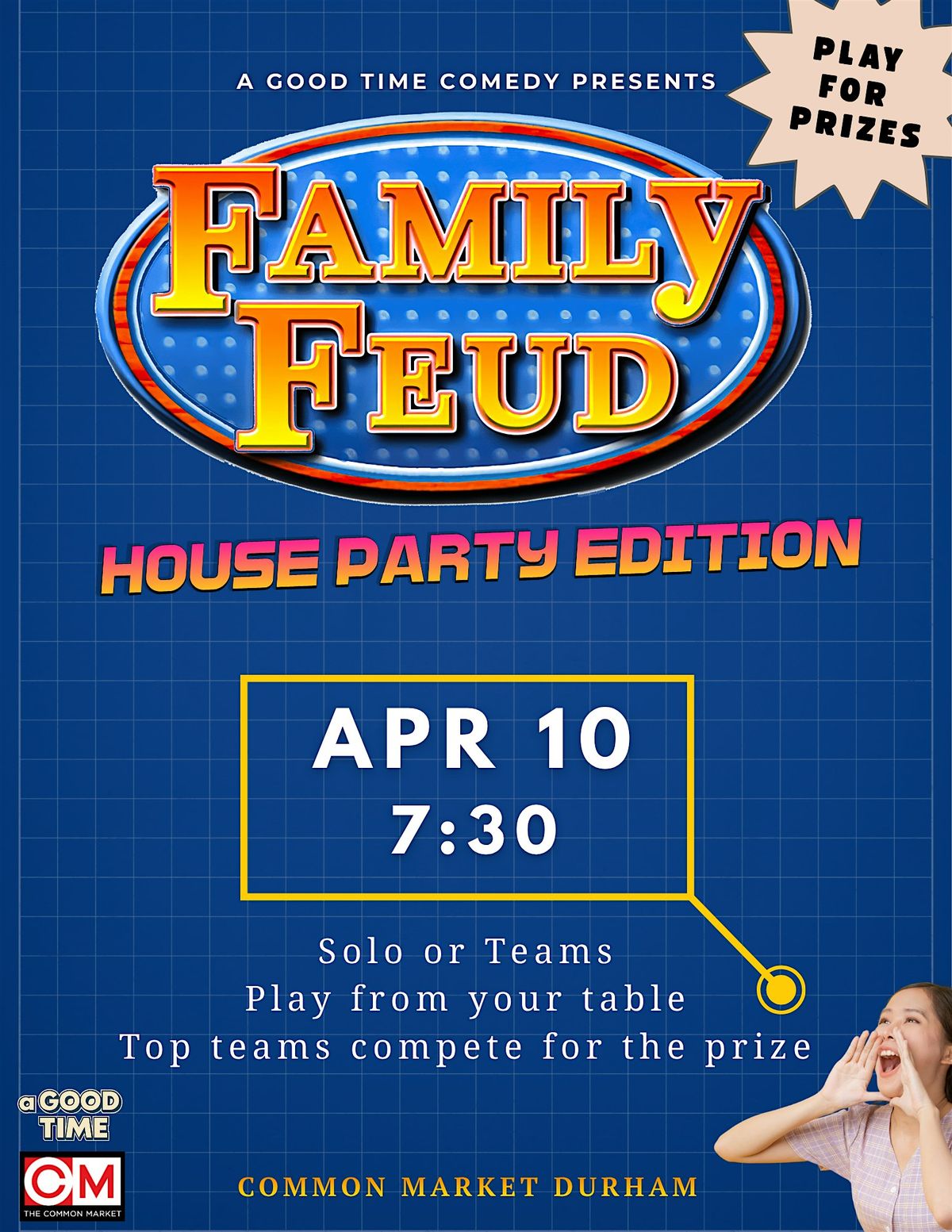This is a new spin on Family Feud built for a bar crowd. Think trivia night meets Family Feud. Instead of just watching a few people up front, everyone at Common Market gets the chance to play from their table.