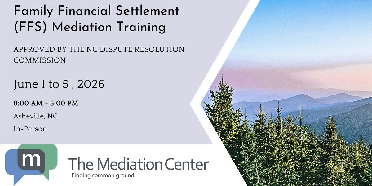 Join The Mediation Center's training team for an in-person Family Financial Settlment (FFS) training. The training will fulfill the 40-hour training requirement for the NC Dispute Resolution Commission's FFS certification process.