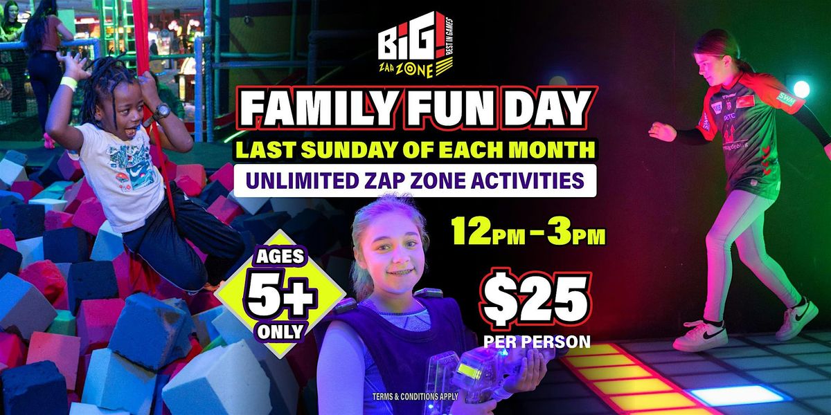 Join BIG Best in Games Warren for an electrifying experience at our Family Fun Day, held every last Sunday of the month! Get ready to unleash the fun from 12:00 PM - 3:00 PM and enjoy access to our thrilling activities.