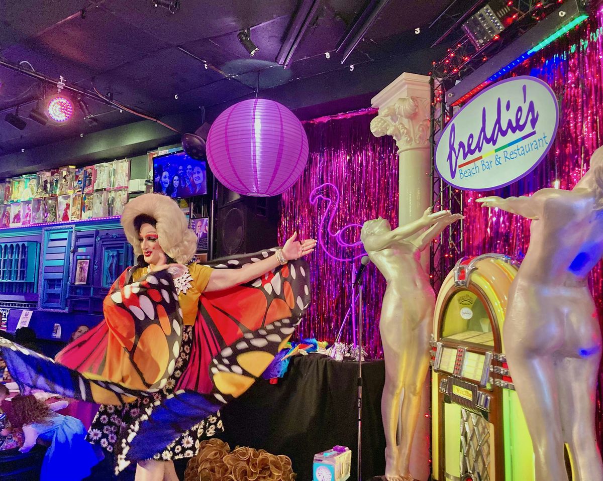 Freddie's is an LGBTQ+, straight-friendly restaurant and bar. It offers Happy Hour daily from 4-7 pm. https://www.freddiesbeachbar.com/