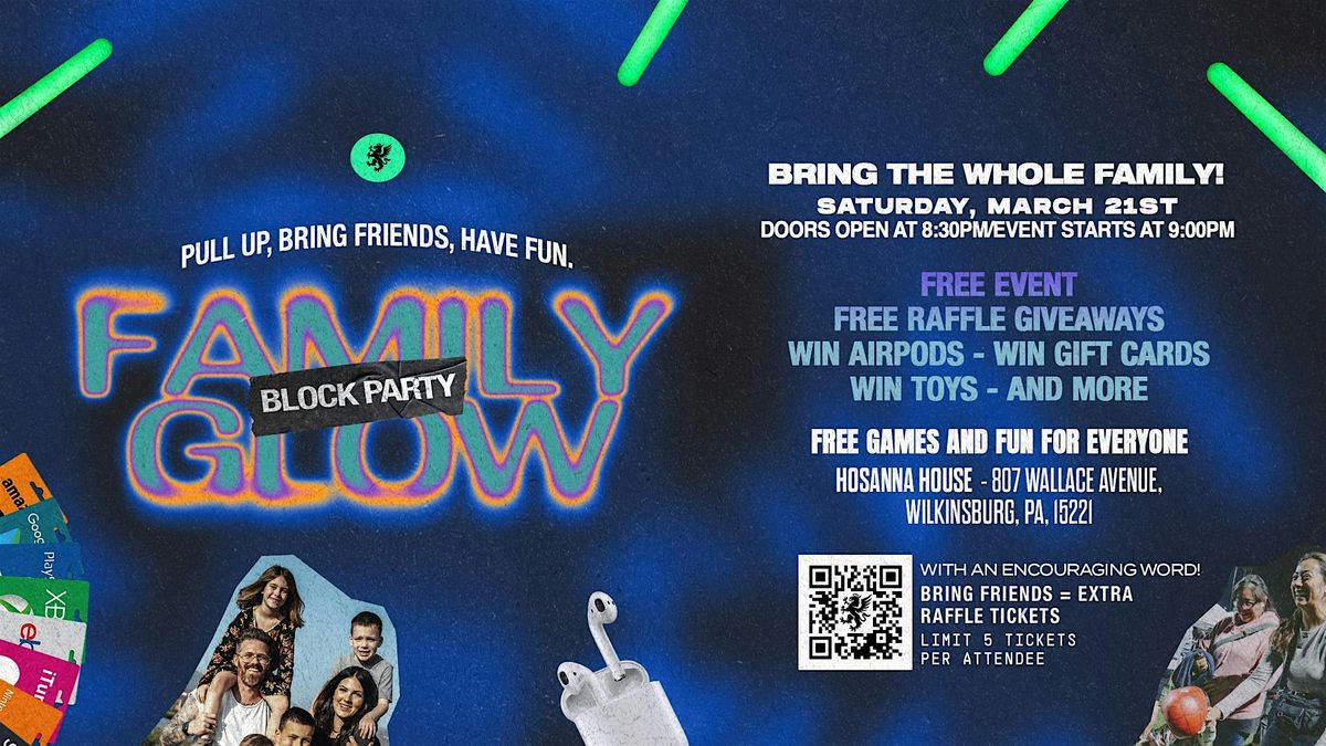Join us for an exciting Glow-in-the-Dark Block Party! This event is designed to bless and serve our community by providing free resources and giveaways for individuals and families.