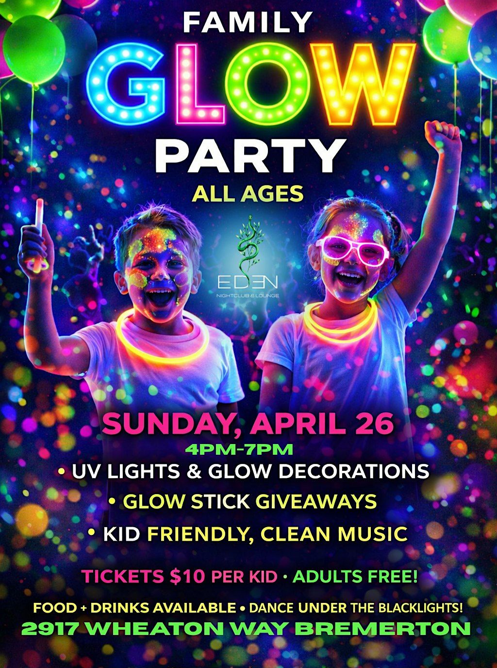 Get ready for a night the whole family won’t forget… we’re turning EDEN into a full neon glow experience 🌈