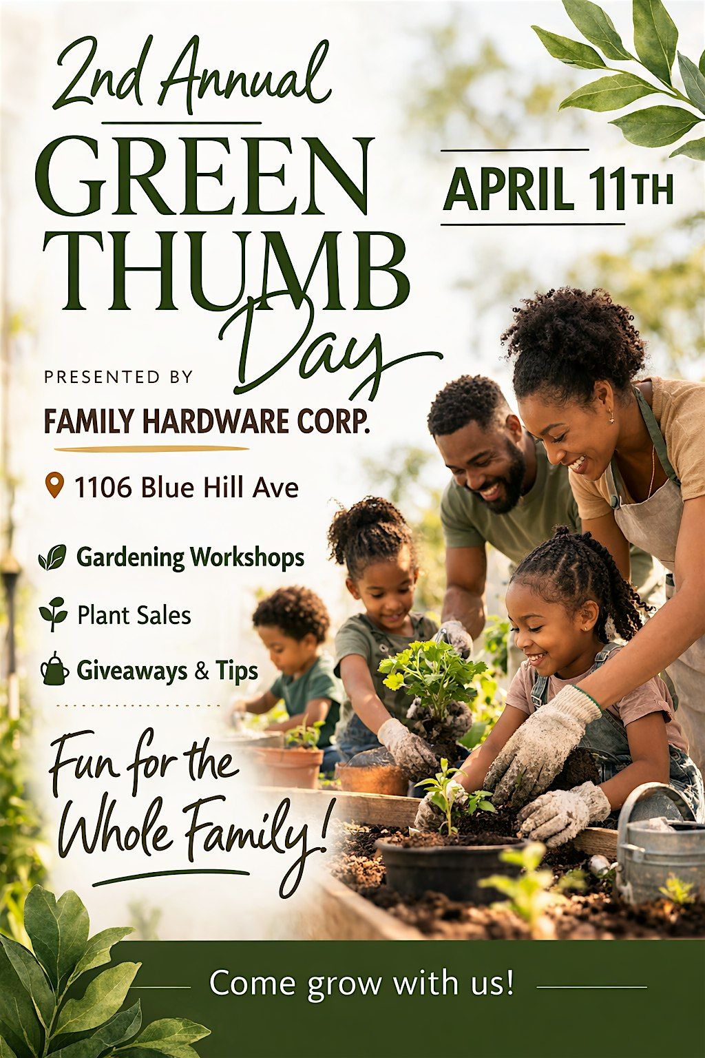 Hey garden lovers! Join us in person for Family Hardware’s 2nd Annual Green Thumb Day. It’s a fun-filled day perfect for everyone who loves plants, flowers, and getting their hands a little dirty. Whether you’re a seasoned gardener or just starting out, come hang out, learn new tips, and share your passion for all things green. Can’t wait to see you there with your green thumbs ready!