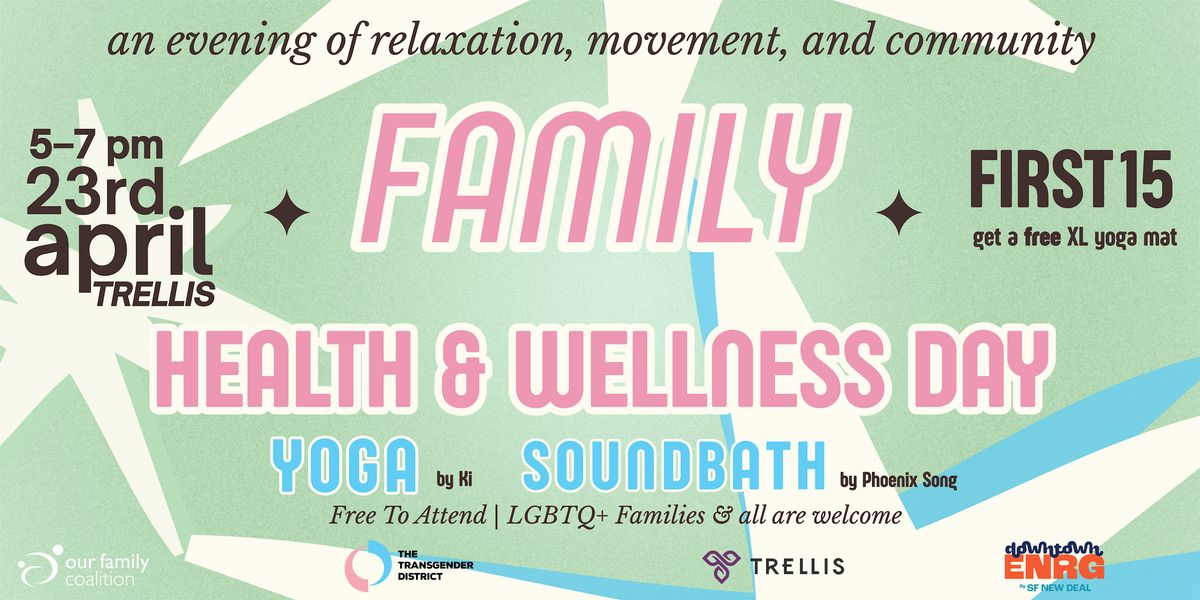 Join us and @Our Family Coalition, April 23rd from 5–7 PM, at Trellis for a free evening of wellness for LGBTQ+ families. This is a space for wellness, nervous system reset, and relaxation.