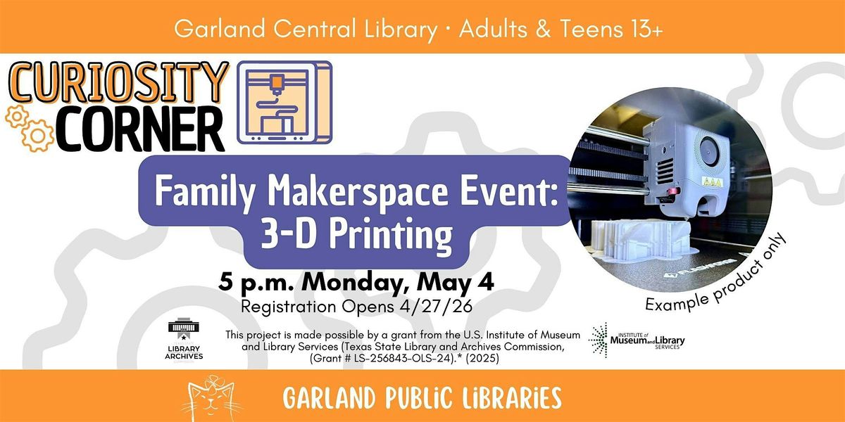 Patrons attending this program will NOT be certified to use the 3D Printers during Open Lab. This introduction program gives young patrons the opportunity to interact with technology and machines. Registration is required.