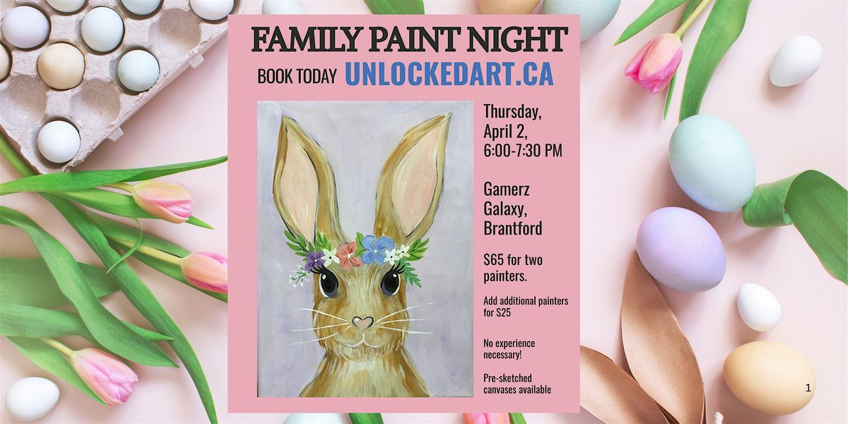 Join us for a fun and creative Family Easter Paint Night as we paint this adorable bunny with a spring accessory like a flower crown, bow tie, or glasses.