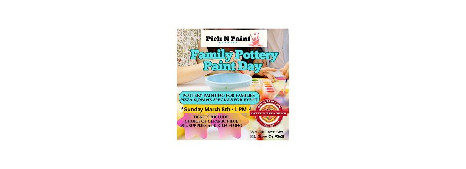 Paint. Pizza. Family Fun! Join us for a hands on afternoon of pottery painting for all ages and skill! Food and drink specials.About this Event