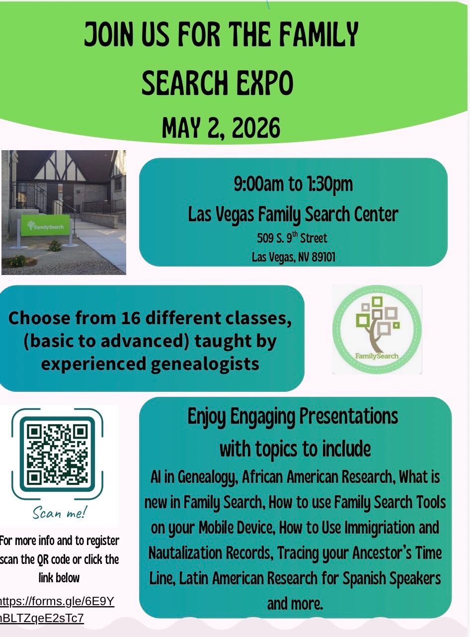Enjoy Engaging Presentations with topics to include Al in Genealogy, African American Research, What is new in Family Search, How to use Family Search Tools on your Mobile Device, How to Use Immigration and Nautalization Records, Tracing your Ancestor's Time Line, Latin American Research for Spanish Speakers and more. Choose from 16 different classes, (basic to advanced) taught by experienced genealogists.