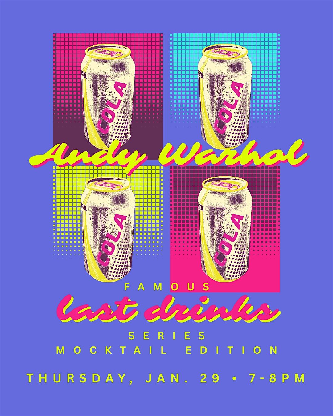 Join us for a presentation on Andy Warhol and a mocktail inspired by his love for coca-cola. There’s more than just soup cans behind this artist! Join us for a night that is part story-telling, part learning and all fun!