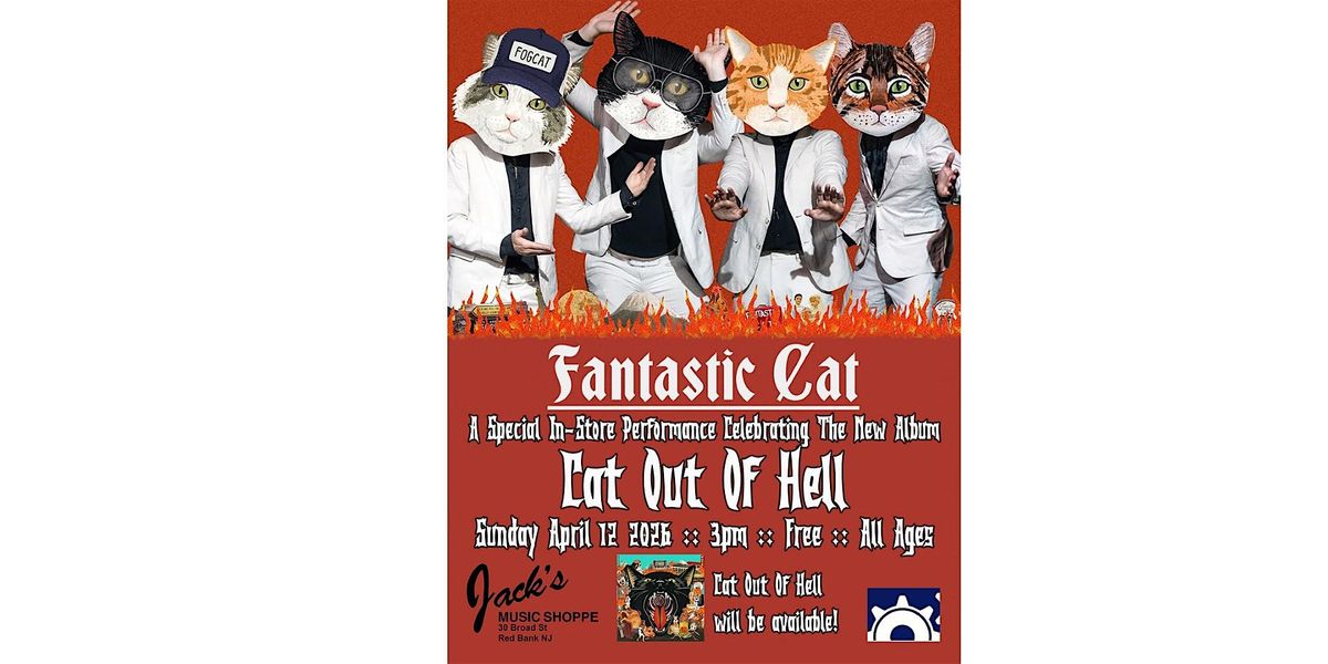 We are thrilled to welcome back Fantastic Cat to Jack's Music! The last time they played here, we all had an incredible time, and we're looking forward to another incredible experience on Sunday - April 12, 2026! It's all happening at 3PM. This is a free event, and it's all ages. We'll have copies of their new record "Cat Out Of Hell" available for purchase on CD & LP (WHILE SUPPLIES LAST).