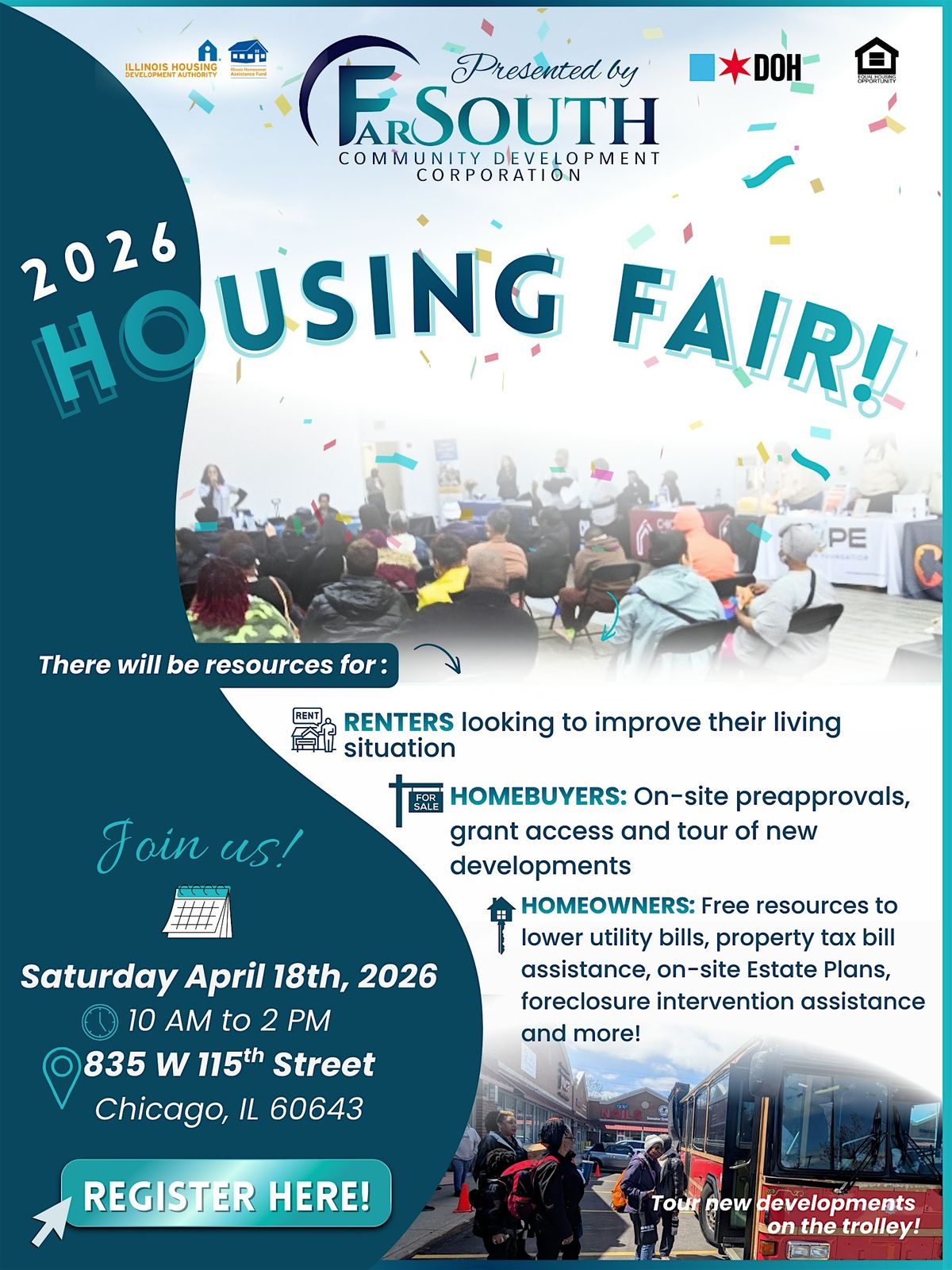 Join our 30+ housing vendors in this fun interactive setting where education and action intersect! Learn about it! Get it done! Win a prize!