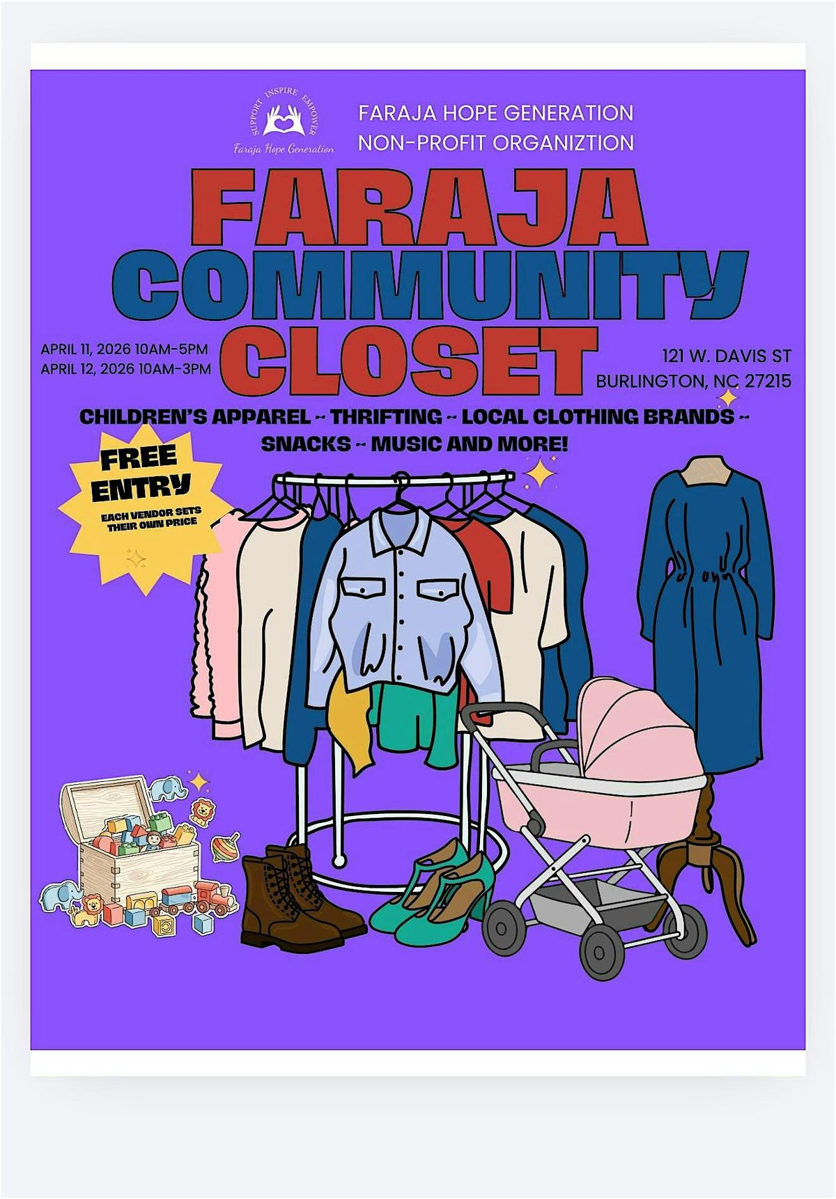 Faraja Hope Generation (FHG) is hosting a thrift pop-up where locals can sell their lightly used items at their desired price in return, at the end of the pop-up anything not sold will be donated to FHG to give to local community partners and our campuses in the Democratic Republic of Congo.