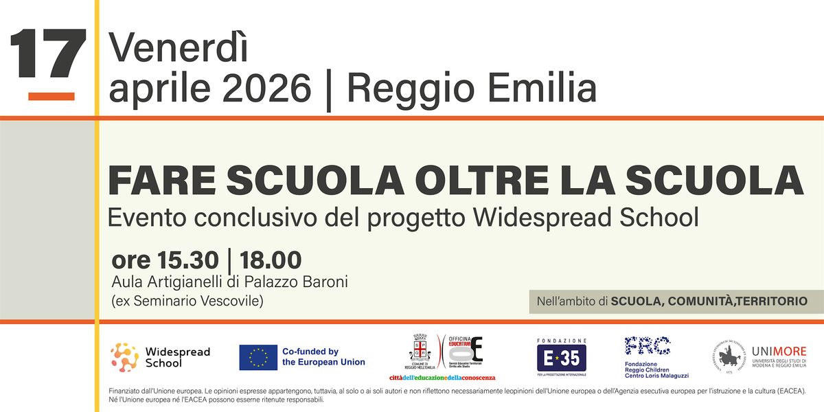 Giornata dedicata al progetto europeo Widespread School. Attraverso keynote di ricercatori ed esperti e una tavola rotonda con istituzioni, scuole e attori del territorio, verranno presentate le Policy Recommendations del progetto: indicazioni concrete per rendere l'educazione diffusa una scelta strutturale dei sistemi educativi.