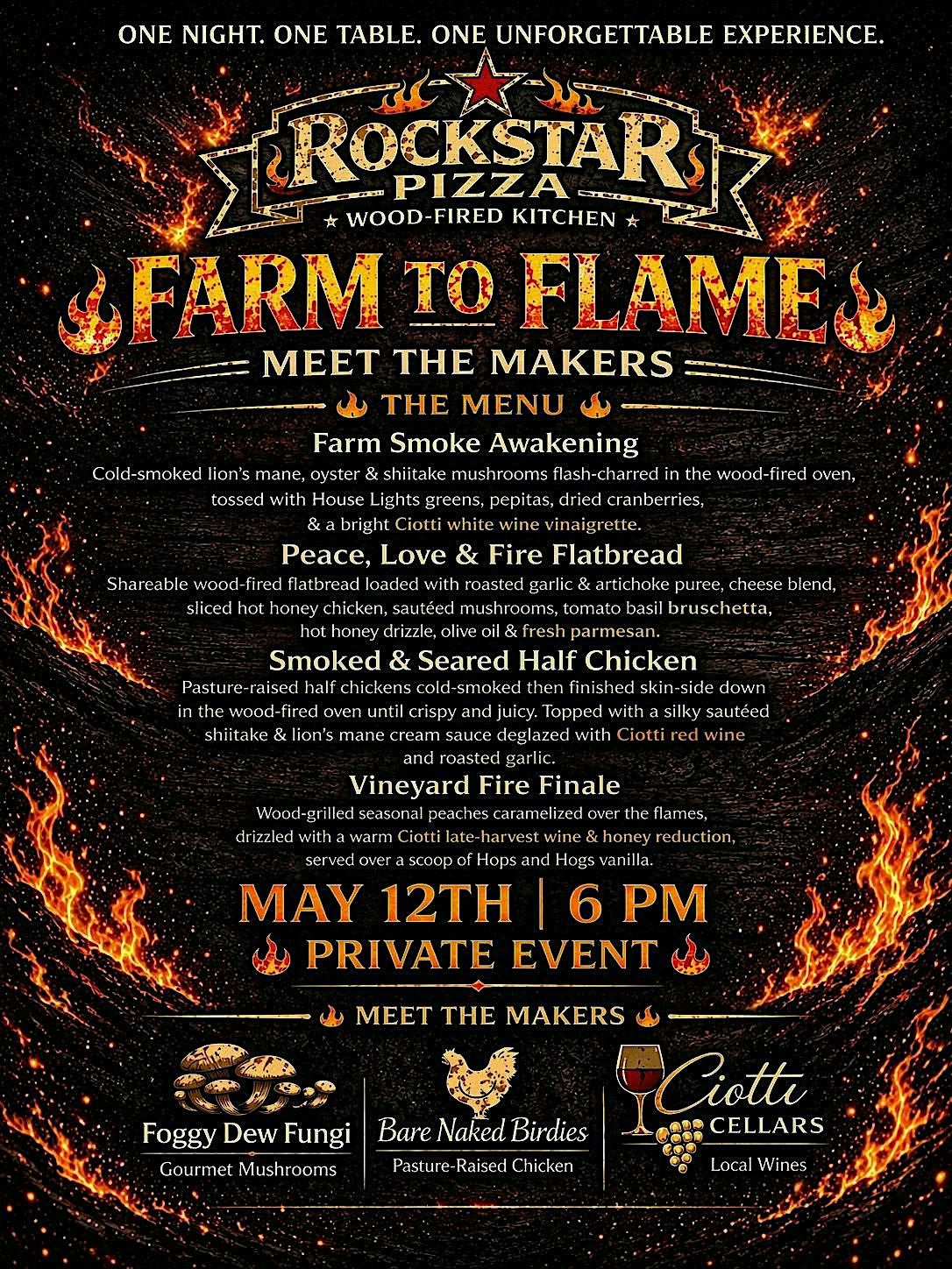 The passionate chefs at RockStar Pizza & Woodfired Kitchen will craft a memorable 4-course meal using these exact ingredients, kissed by the flames of their wood-fired oven.
