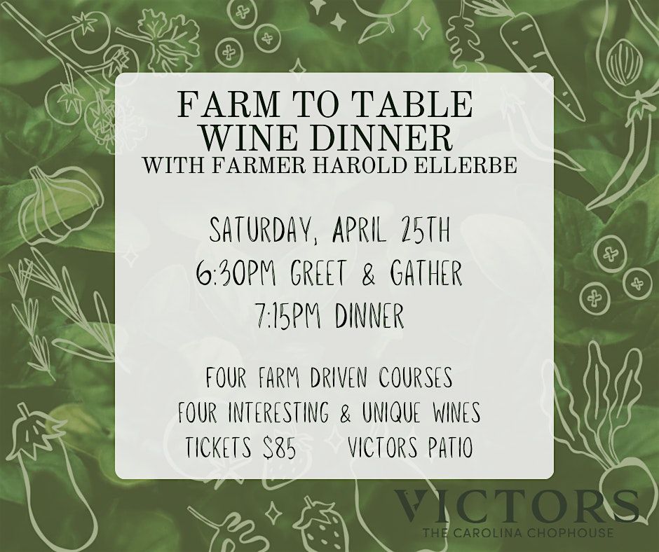 We are really letting out creative juices flow with a quaint and intimate wine dinner with Farmer Harold Ellerbe. Only 14 tickets are available for this dinner, and we will be shooting for the moon with an interesting menu and wine pairings that will push the boundaries!