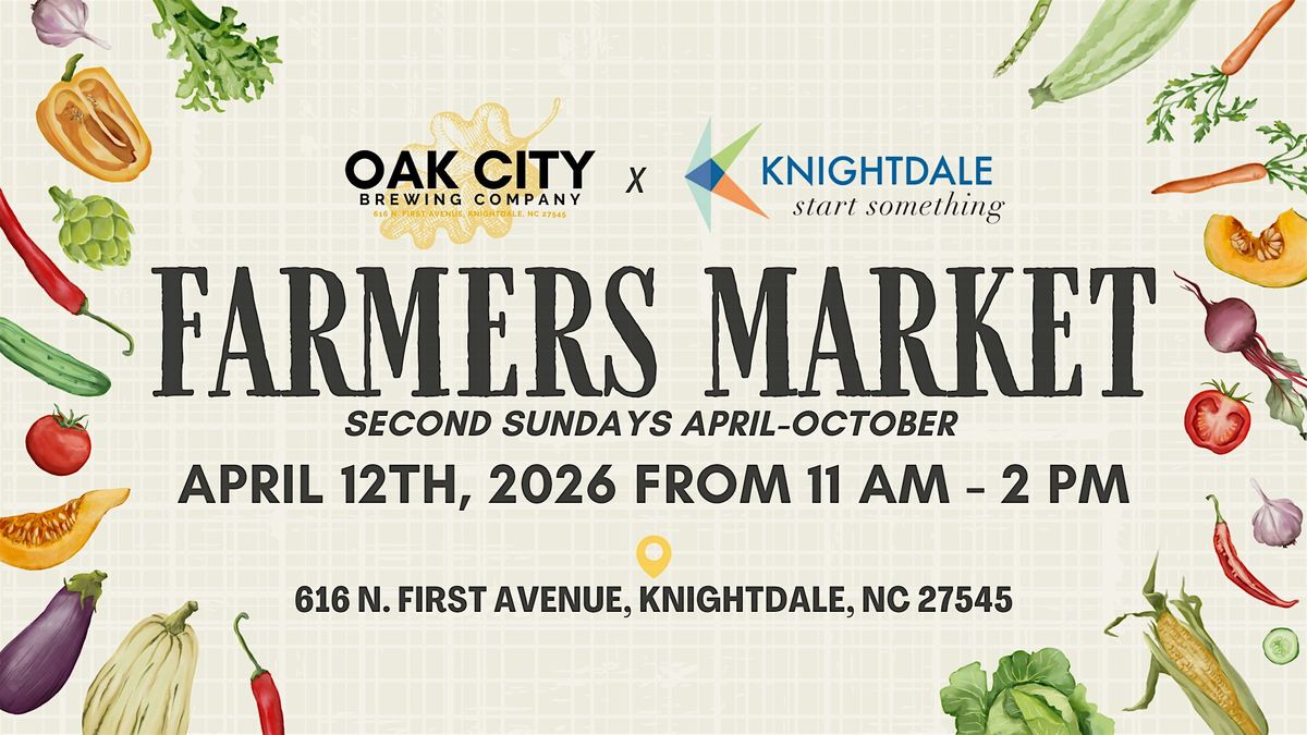 Join us and Knightdale Parks and Recreation for our first Farmers Market of the year on Sunday, April 12th at Oak City Brewing from 11 AM - 2 PM!