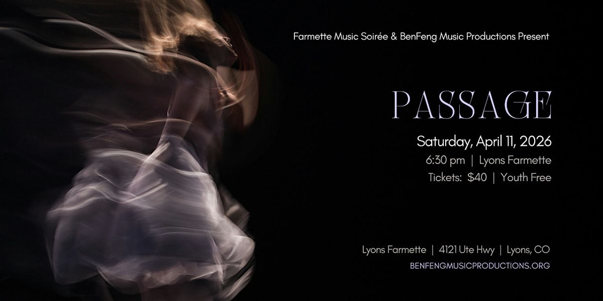 Lyons Farmette and BenFeng Music Productions present Passage, an honest dive into the beautiful, arduous, and revelatory journey from origin to becoming. Featuring an all-woman ensemble of dancers and musicians, the performance weaves together original choreography by Jen Campbell with the music of Antonio Vivaldi, Maurice Ravel, Ljova, and India Arie. Through a fusion of music, poetry, dance, and song, Passage explores how we navigate the exquisite transitions of life—finding light in darkness, joy in sorrow, and beauty in chaos. Inspired by the sentiment “I contain multitudes,” join us for an evening that celebrates the complexity of the human spirit.