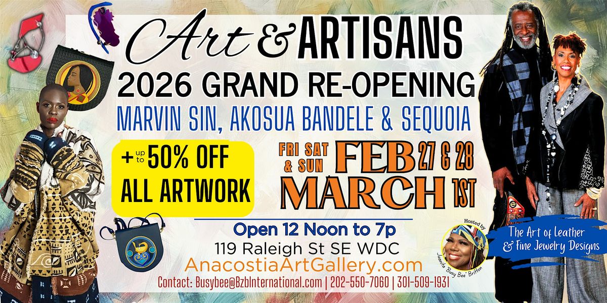 Join us for the 2026 Grand Re-Opening at Anacostia Art Gallery — a three-day celebration spotlighting master artisans, cultural craftsmanship, and exceptional artistry.