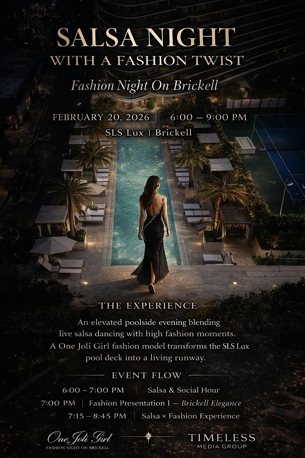 Fashion is curated by One Joli Girl, with production by Fashion Night On Brickell, and Salsa Night curated by Timeless Media Group, creating a dynamic fusion of Latin rhythm and high fashion.