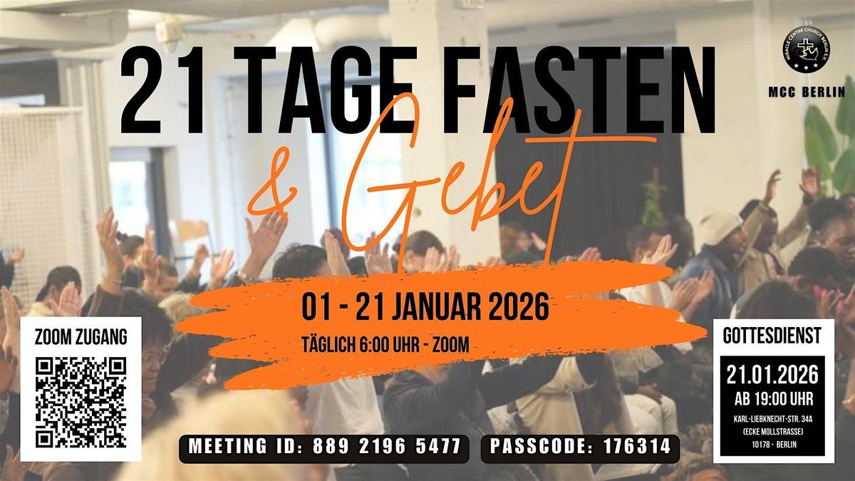 Komm und feiere mit uns den Abschluss unserer 21 Tage des Gebets und Fastens. An diesem besonderen Abend kommen wir zusammen, um Gebetsaltäre zu bauen, das Heilige Abendmahl zu feiern und echte Gemeinschaft zu erleben.