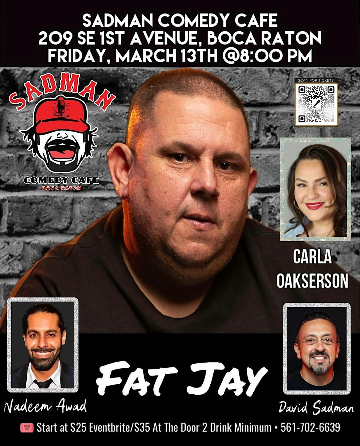 Headlining the night is Fat Jay, bringing his raw, fearless humor and brutally honest takes that hit hard and leave the room howling. If you like comedy thatβs unapologetic, real, and laugh-out-loud funny, this is your show.