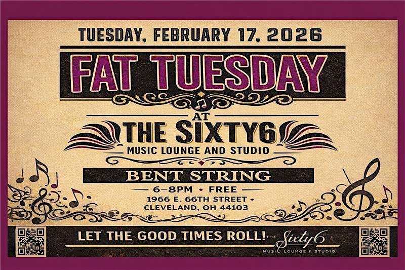 Laissez les bons temps rouler! Join us for a Mardi Gras celebration featuring live music by Bent String at The Sixty6 Music Lounge and Studio.