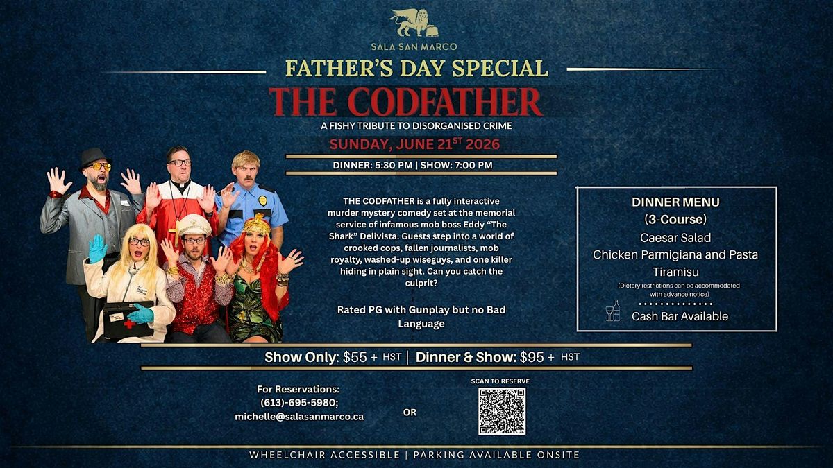 THE CODFATHER is a fully interactive M**der mystery comedy set at the memorial service of infamous mob boss Eddy “The Shark” Delivista.