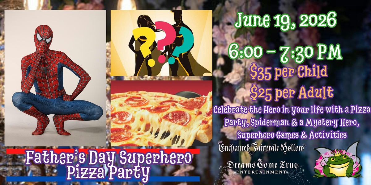 Come join Spiderman & a mystery hero for some superhero fun to celebrate the True Heroes in your life for Father's Day! A pizza party for dad and his little hero, amazing superhero activity time, and meet and greet with your friendly neighborhood Spiderman is sure to have you fighting crime in no time!