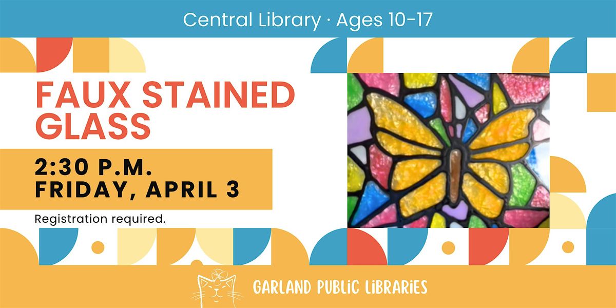 Class Description: If you are a tween or teen ready to try your hand at stained glass art, this program is for you. In Faux Stained Glass, you’ll create stunning designs that look just like real stained glass, but with a twist! You’ll craft your artwork in a frame, making it easy to display at home. No special skills required—just bring your creativity! Perfect for ages 10-17, this program welcomes artists of all levels. Registration is required.