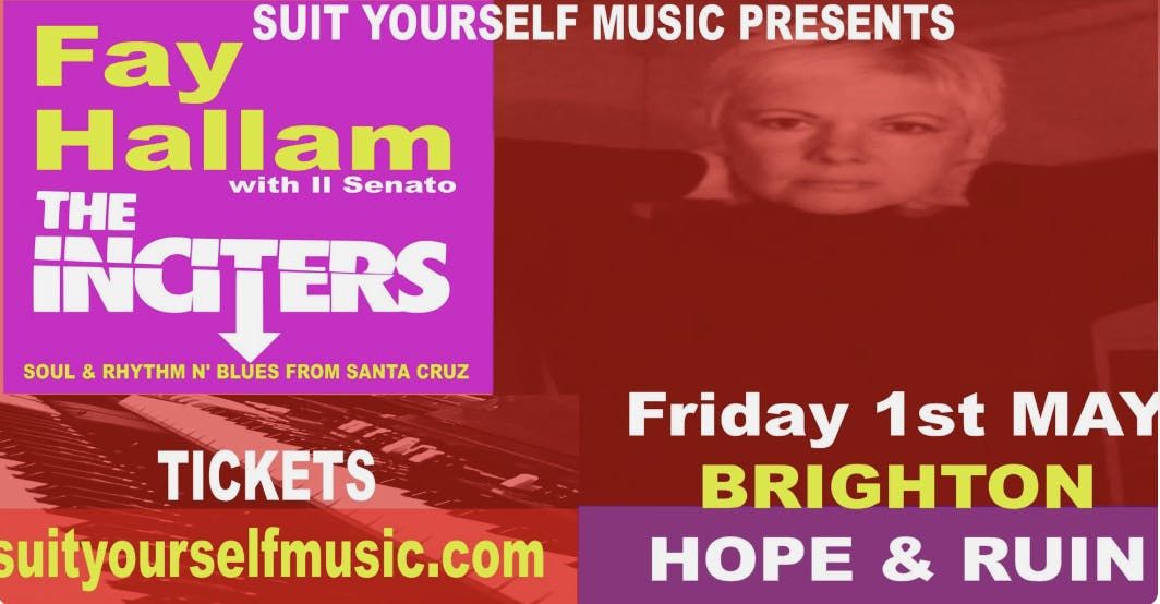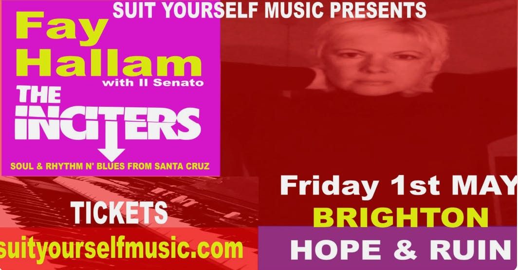 Suityourself Presents:FAY HALLAMFay Hallam is a hugely respected Hammond organist, singer and songwriter, with over 10 albums to her credit and a career already spanning over thirty years. She first came to prominence in Wolverhampton Mod-popsters, Makin' Time, in the early 1980's, along with a pre-Charlatans Martin Blunt.+ The Inciters